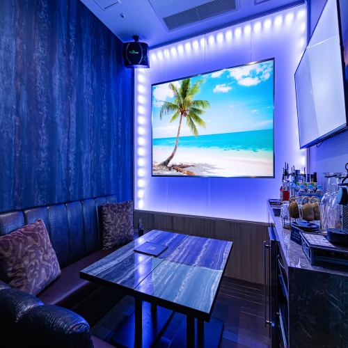 全室大画面なので、カラオケではなくプライベートシアターとしてもご利用できます♪部屋内にあるバーカウンターでお好みのドリンクを楽しみながら、ゆったりソファーで映画鑑賞、動画鑑賞をお楽しみください♪